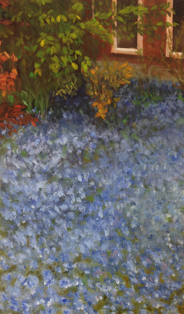 In de tuin aan de zijkant van ons huis woekeren de vergeet me nietjes.