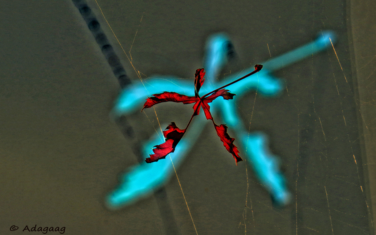 Foto Rood Blauw Bruin Digitaal Fotografie Bewerkt Blad Spinrag Photografic