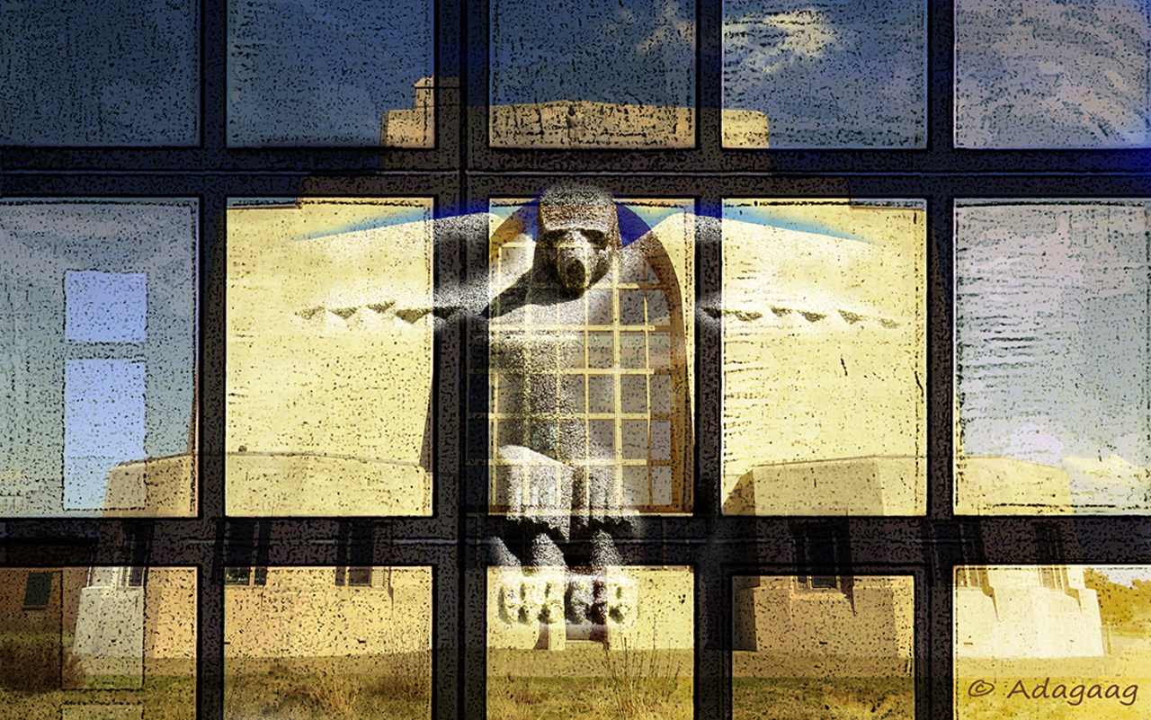 Foto Geel Blauw Vogel Yellow Blue Digitaal Fotografie Beeld Vierkant Bewerkt Bird Architectuur Architecture Raam Building Photo Gebouw Window Statue Photoart