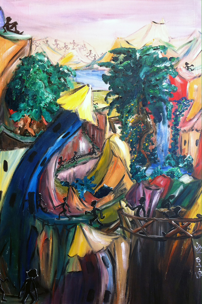 Judith Mens maakt sinds 2001 schilderijen die vallen onder haar kleurrijke wereld. Judith werkt als groepsleerkracht op een vrijeschool. Zij is groot gebracht in een kunstzinnig gezin. Creatief zijn is een eerste levensbehoefte.