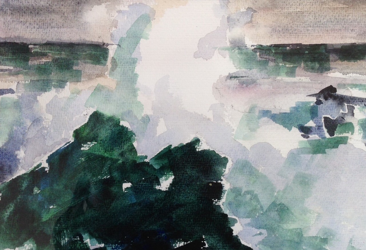woeste golven beuken op de kust aquarel inklusief lijst en paspartout
