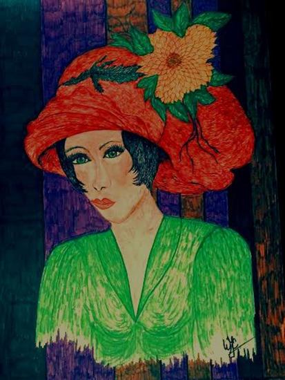 Tekening Vrouw Tje Met Rode Hoed
