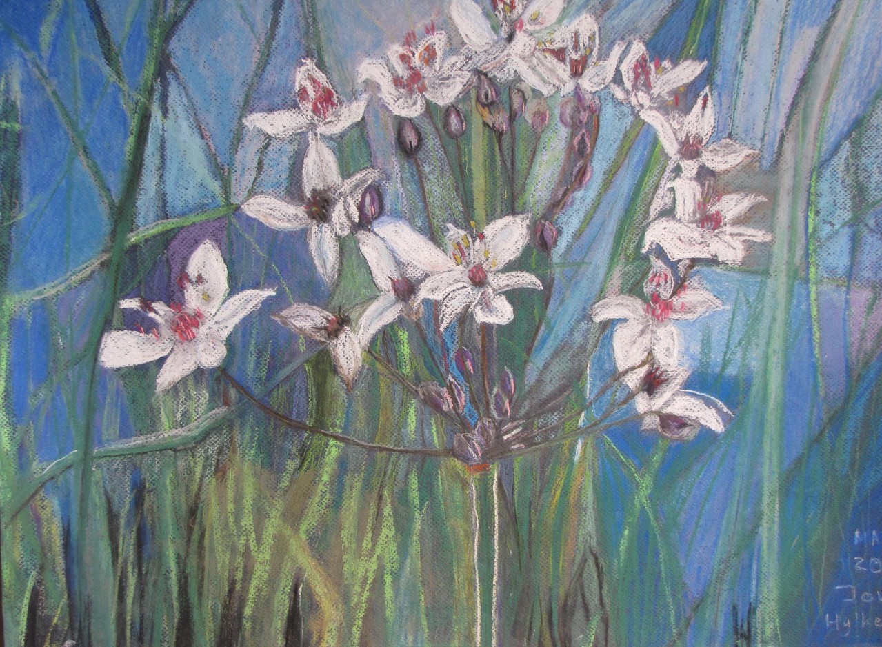 De Zwanenbloem interesseert me in hoge mate. Ze had in mijn jeugd al een beschermde status. Ze was kleurrijk, bijna magisch, zoals ze in die boerensloot stond in dik eendenkroos. Ik had er als kind graag van willen snoepen, maar dat mocht niet van moeders; het was immers een giftige plant, een het waren geen kersen die ze droeg. Maar goed, inmiddels heb ik al een behoorlijke serie gemaakt van de bloem, of eigenlijk plant. Vier studies in pastel en ééntje in olieverf.