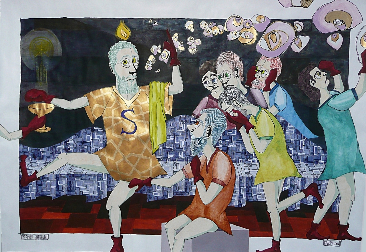 Ach! Kapitein Socrates staat op het punt de gifbeker aan te nemen.