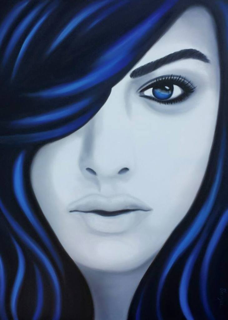 Schilderijen in olieverf. Vrouwelijke schilderijen met een voorkeur van close-up fragmenten, gebracht in een realistische stijl of in een popart stijl.