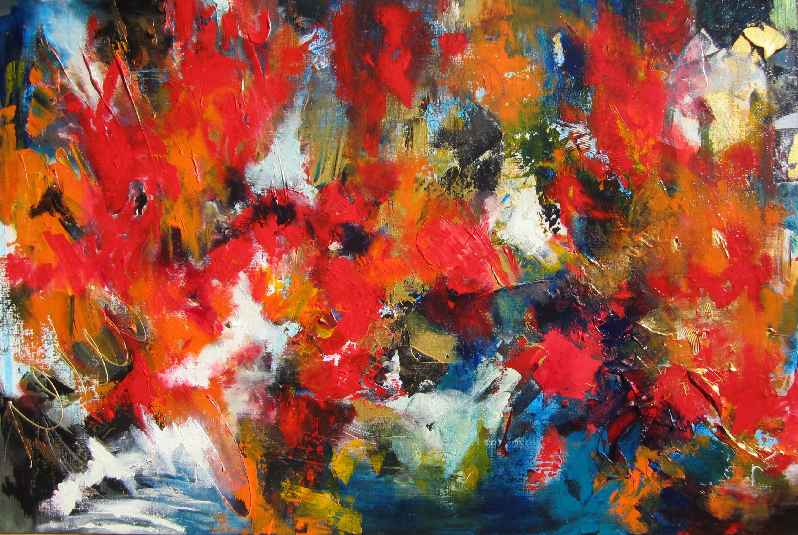 Riny Vroon schildert al vele jaren. Zij werkt zonder te schetsen, spontaan en expressief. Haar doeken prikkelen de verbeelding zodat de kijker er een eigen verhaal van kan maken. Je bespeurt plotseling een rivierbedding, een stadsgezicht of de contouren van bloemen. De harmonie van kleuren is een lust voor het oog.De thema's zijn actueel en herkenbaar voor iedereen.