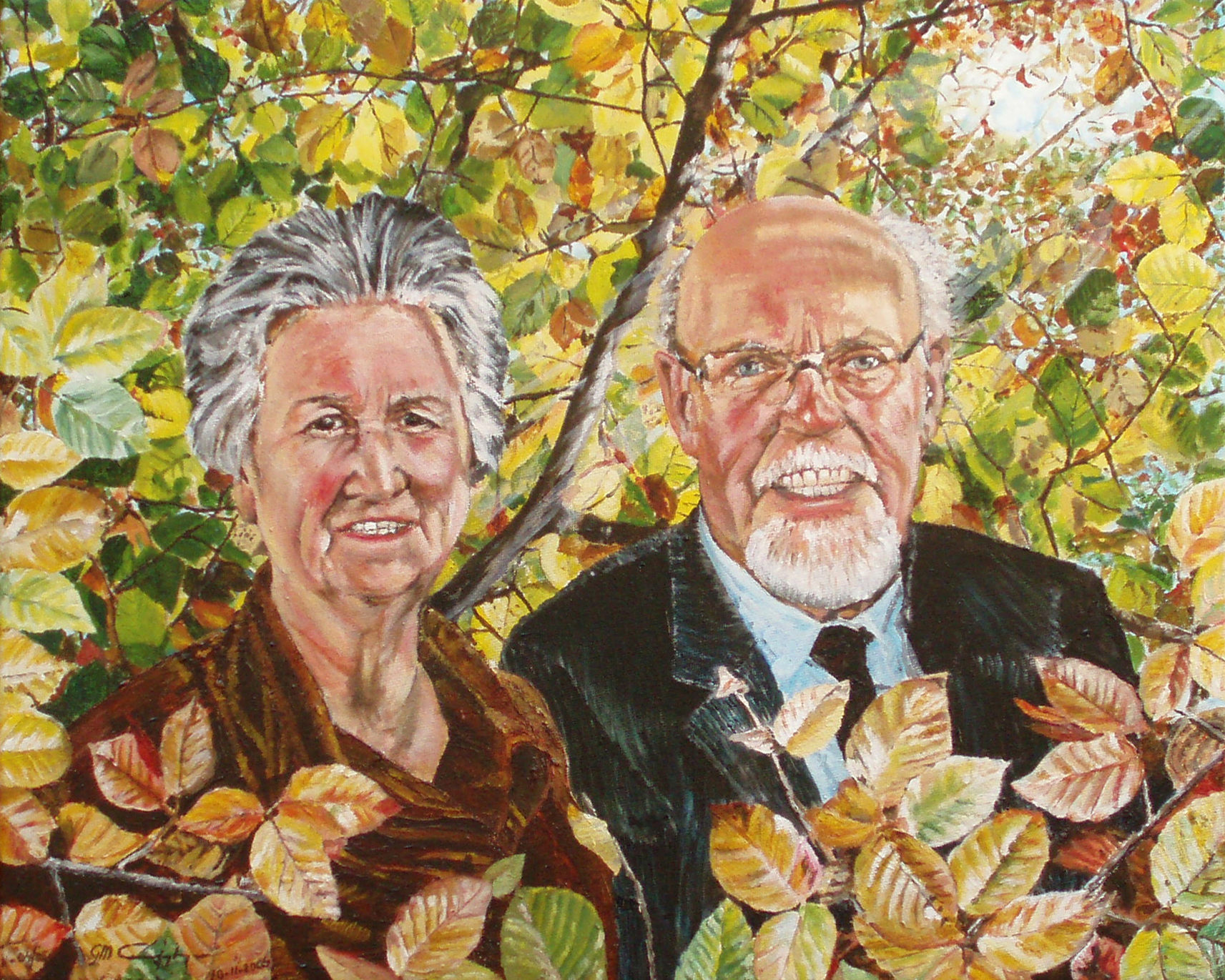 Portret Oil Olieverf Bladeren Herfst Bos Leaves Autumn Dubbelportret Forest Dubble