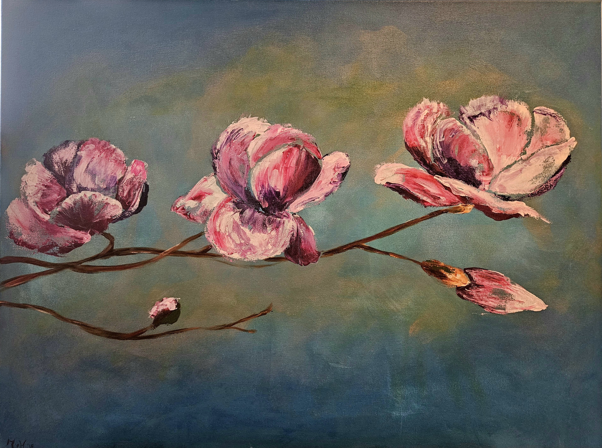 Blauw Paars Goud Groen Bloemen Van Schilderijen Roze Tak Lila Bloesem Voorjaar Verjaardag Magnolia Aqua Hoorn Bloeiende