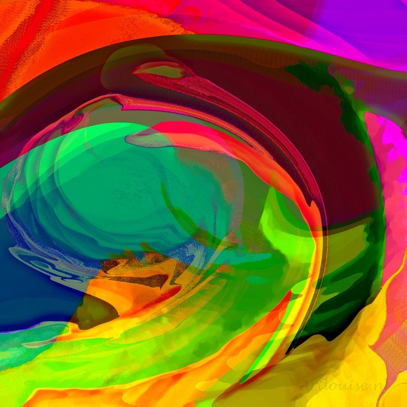 Rood Geel Blauw Paars Groen Bruin Digitaal Rond Diepte Plexi Dibond Epoxy Museumkwaliteit 6mm Foto Abstract