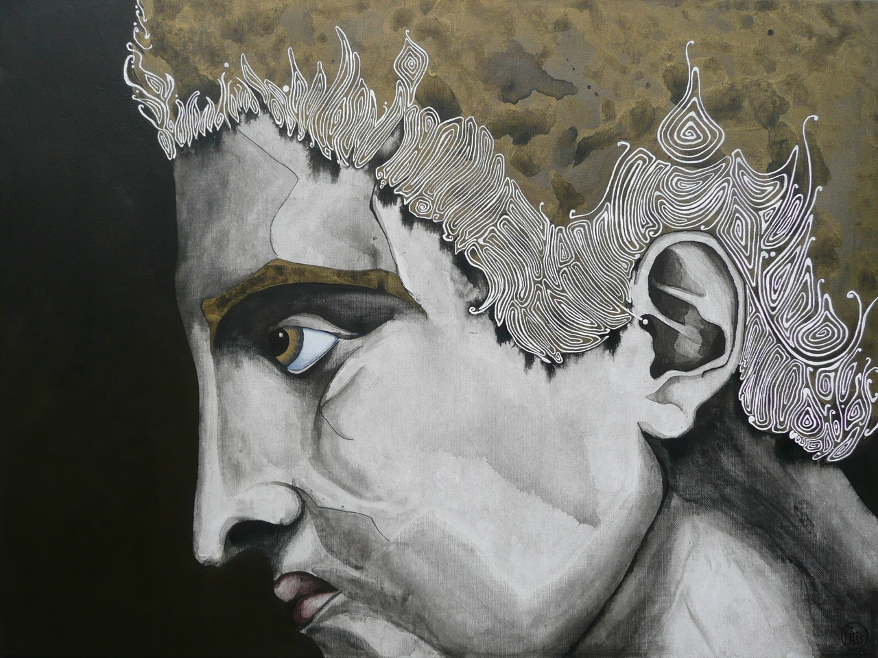 Als een postmoderne alchimist mengt Hildert Raaijmakers de beeldtaal van de microchip, klassieke profielen van mythologische halfgoden, baardige zeebonken en fabeldieren met een snuif middeleeuwse kleurensymboliek. Schrifttekens, pixels, ijle landschappen en cartoonelementen benadrukken de magie van zijn monumentale tableaus.