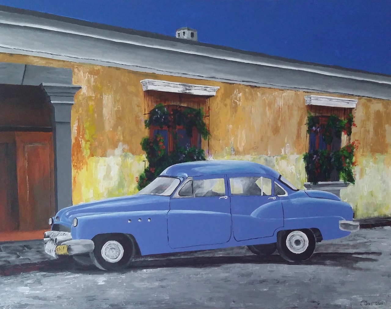 Een van de beroemde, mooi opgepoetste oude auto zoals je die in Cuba tegekomt. Jiska, de vriendin van mijn zoon is daar geweest en heeft dit schilderij kado gekregen voor haar afstuderen.