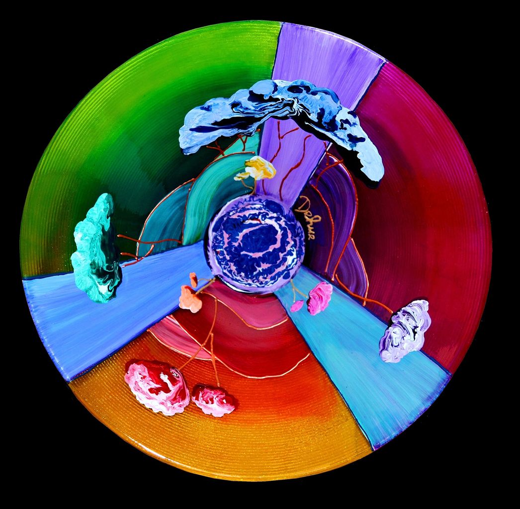 Rood Oranje Geel Landschap Blauw Paars Groen Glas Licht Kleuren Kleurrijk Schaal Roze Rond Vrolijk Fantasie Kleur Vlakken Transparant Glazen Kleurvlakken Fantasielandschap