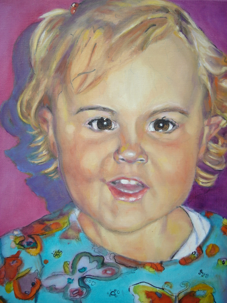 Portret van een meisje. getekend en geschilderd met rietpen en penseel in Oost-Indische inkt en olieverf op linnen doek 50x60 cm. In opdracht geschilderd.