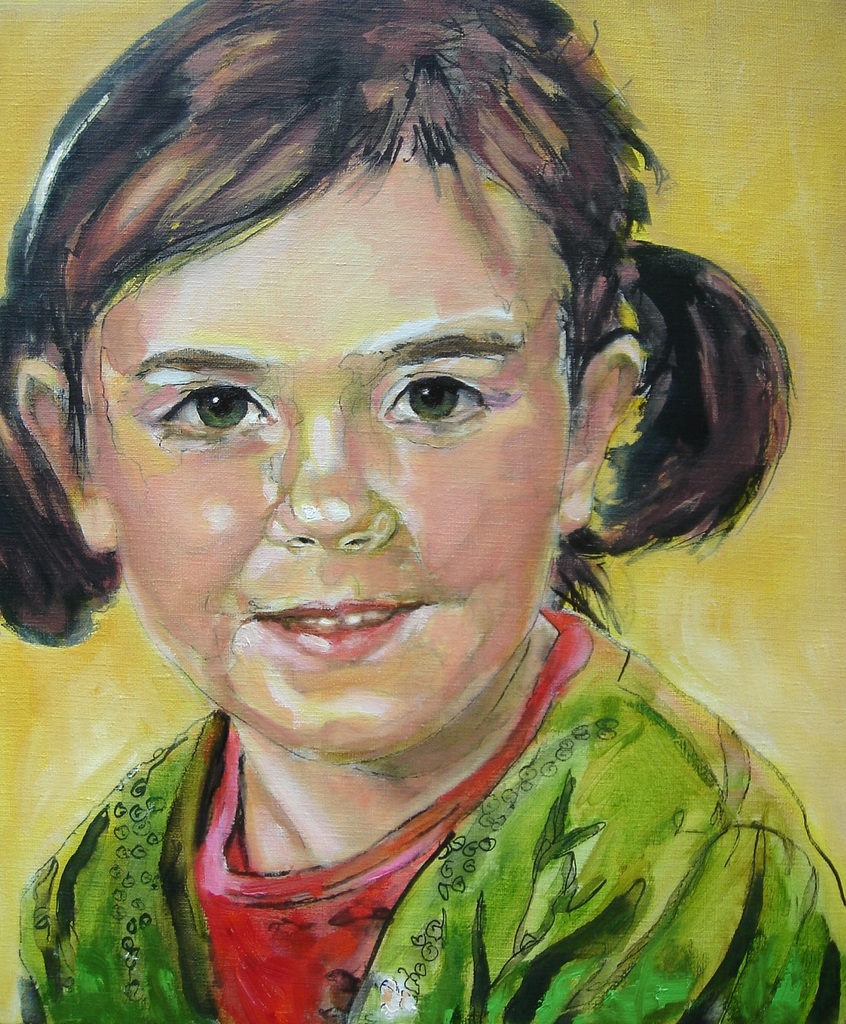 Meisje Kind Portret Kleuren Kleurrijk Olieverf Doek In Veel Inkt Linnen Opdracht Rietpen Penseel Oost-indische