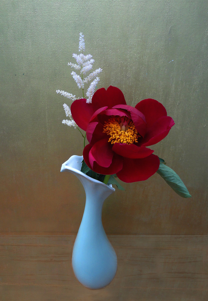 Foto Rood Geel Blauw Goud Vaas Bloem Roze Roos Schildering Klassiek Kitsch Cyaan Pompoenroos