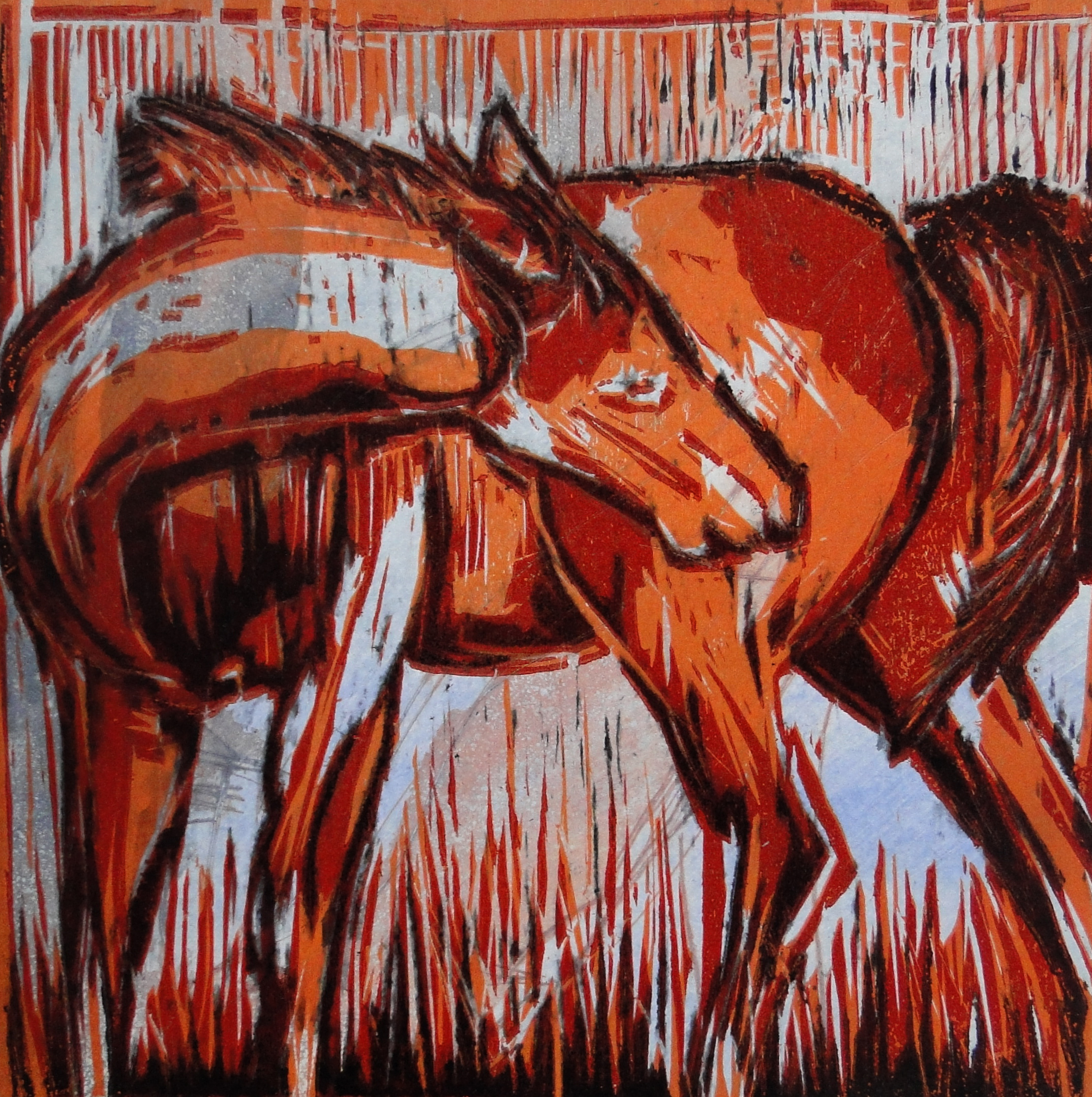 Kleurenhoutsnede, reductietechniek, gedrukt op een ets