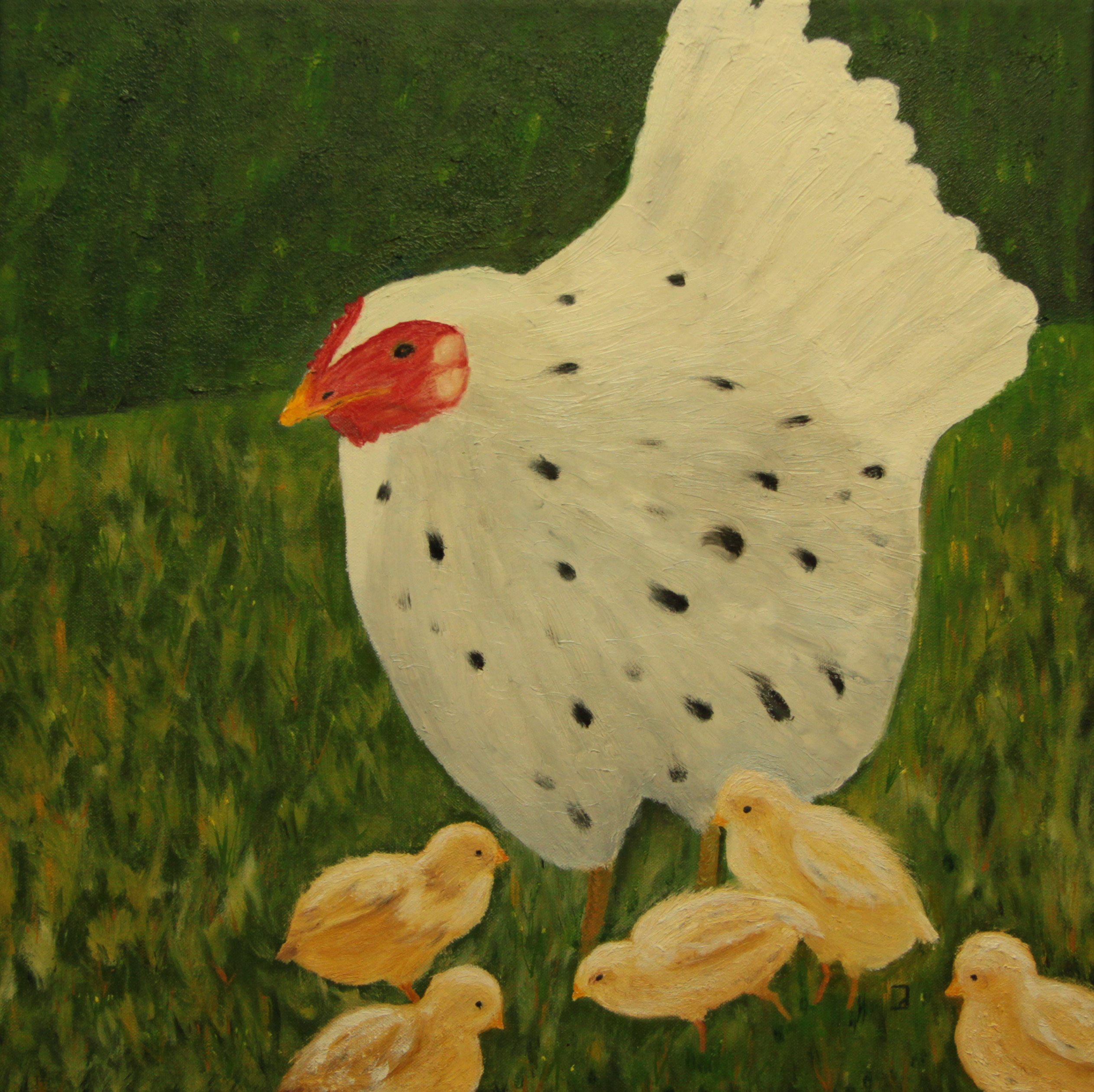 Kip Met Kuikens Olieverf Op Doek