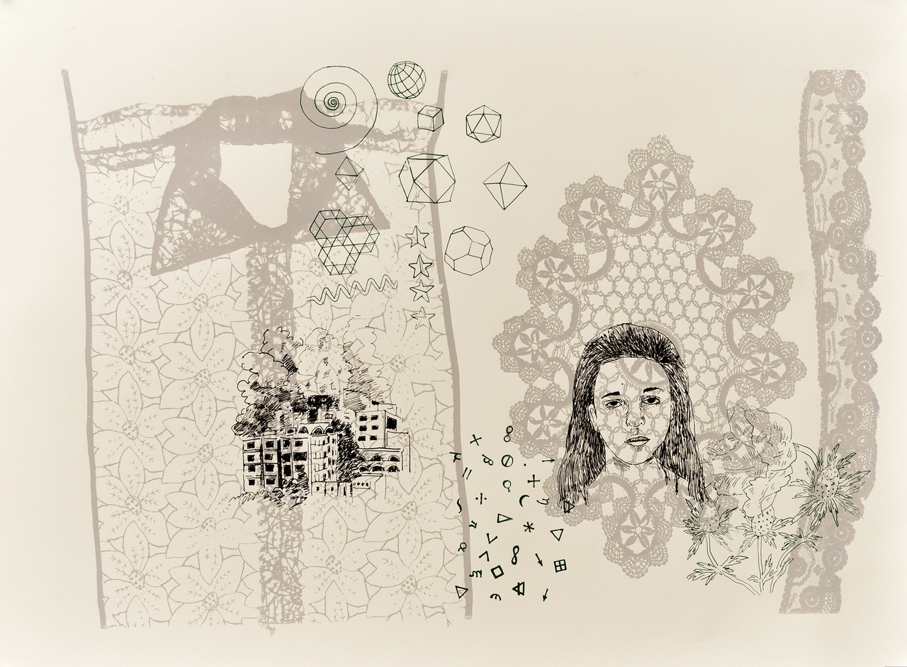 Speciaal voor tentoonstelling gemaakte Zeefdruk.