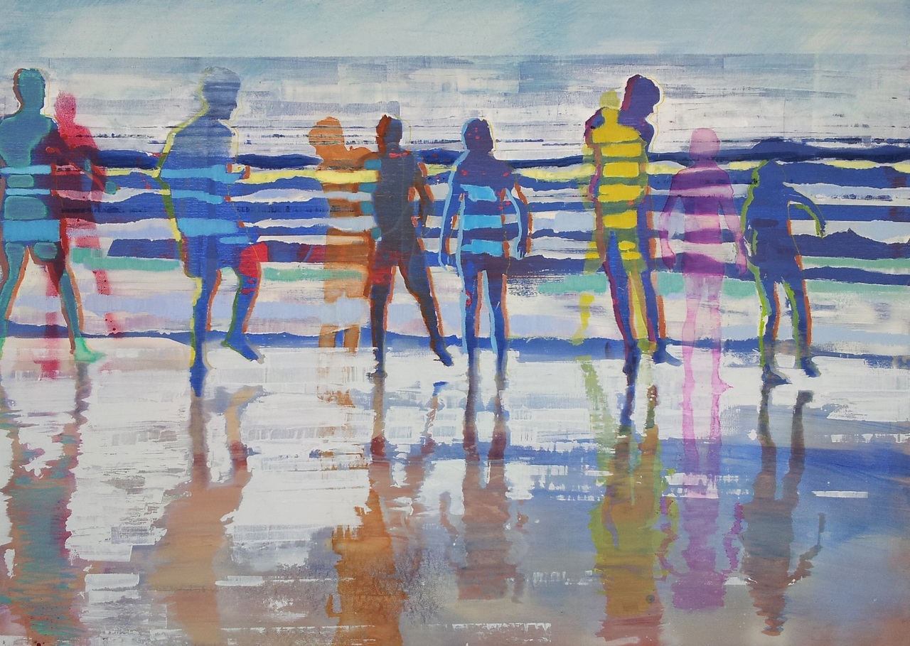 Silhouetten en landschappen worden lijnen en vlakken en vormen samen een compositie. Op basis van alledaagse beelden ontstaan geabstraheerde landschappen. Daarin zijn de mensen en waar ze mee bezig zijn, af en toe nog zichtbaar of herkenbaar.