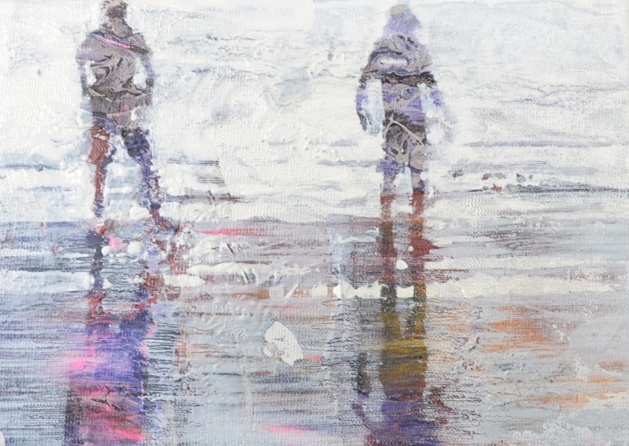 People moving in the light, together or alone, connected to the landscape and eachother?