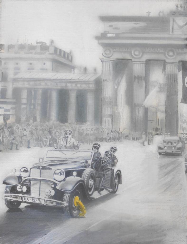 Adolf H.krijgt een wielklem aan zijn cabrio (uit de serie "changing history by wheelclamb"
