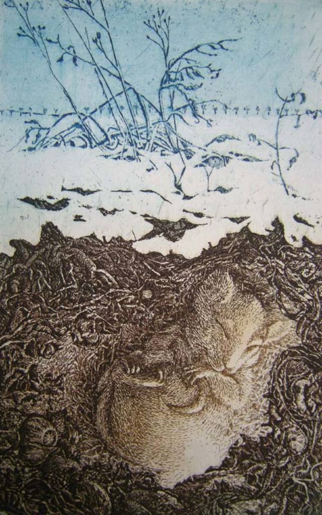 Art Kunst Sneeuw Winter Grafiek Aarde Ets Muis Earth Hole Underground Slaap Etching Snow Sleep Holletje Winterslaap Hibernation Relmuis Hazelmuis Eikelmuis