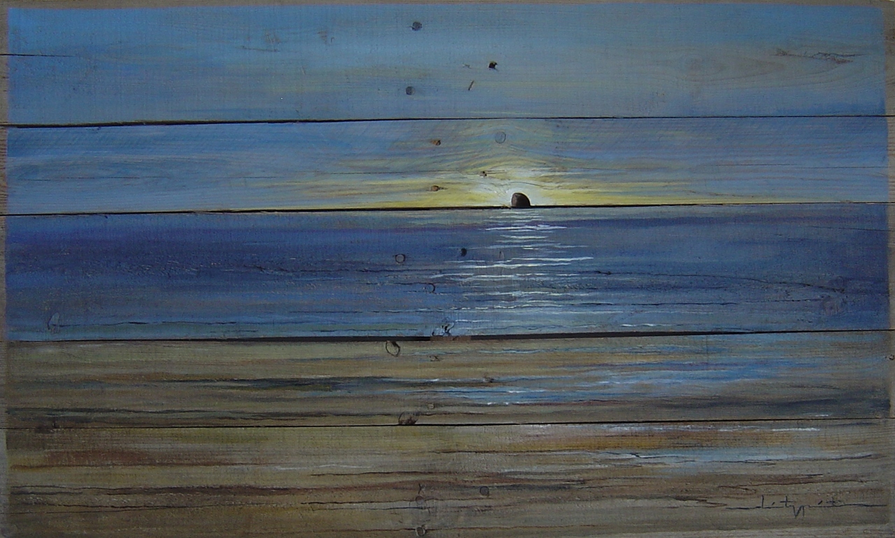 Zee Strand Blauw Acryl Zonsondergang Juthout Houtnerven