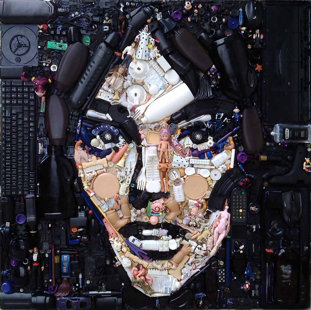 SHE'S A MODEL 1, assemblage made out of old children toys