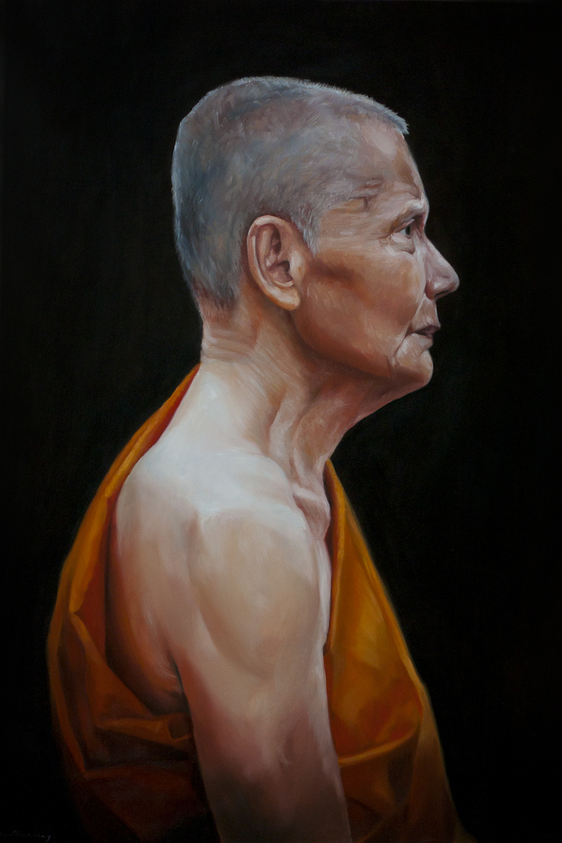 Een 'en profil' portret van een Thaise monnik