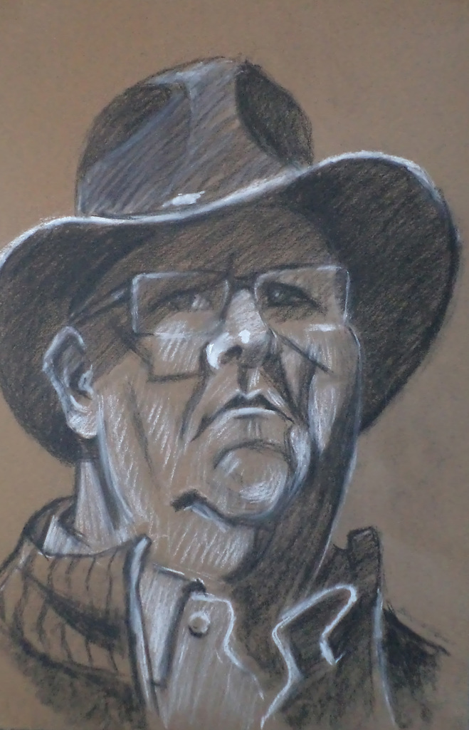 Man met hoed. Getekend in contékrijt.