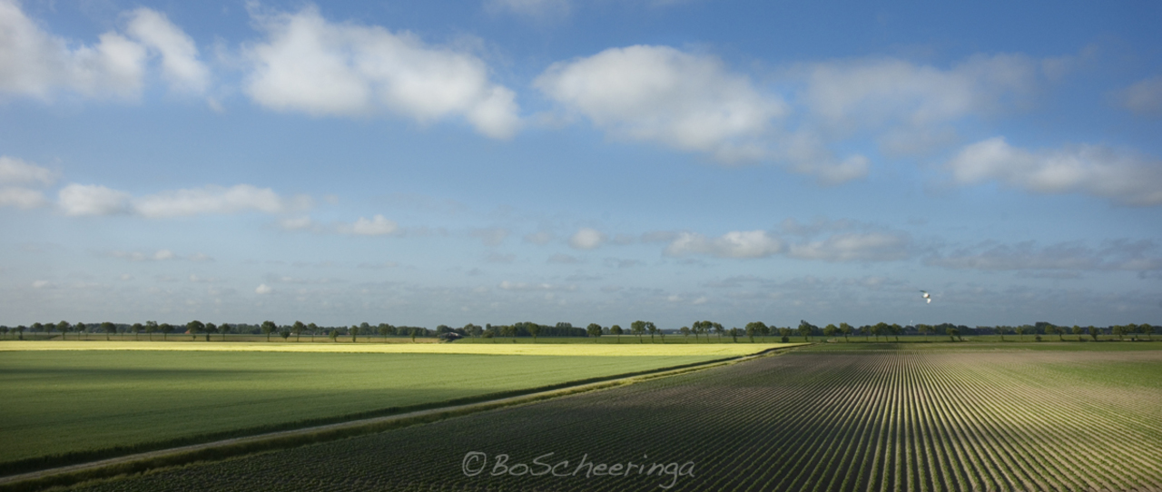 Akkers in de Noordpolder bij Westernieland, gefotografeerd vanaf de Waddendijk.
