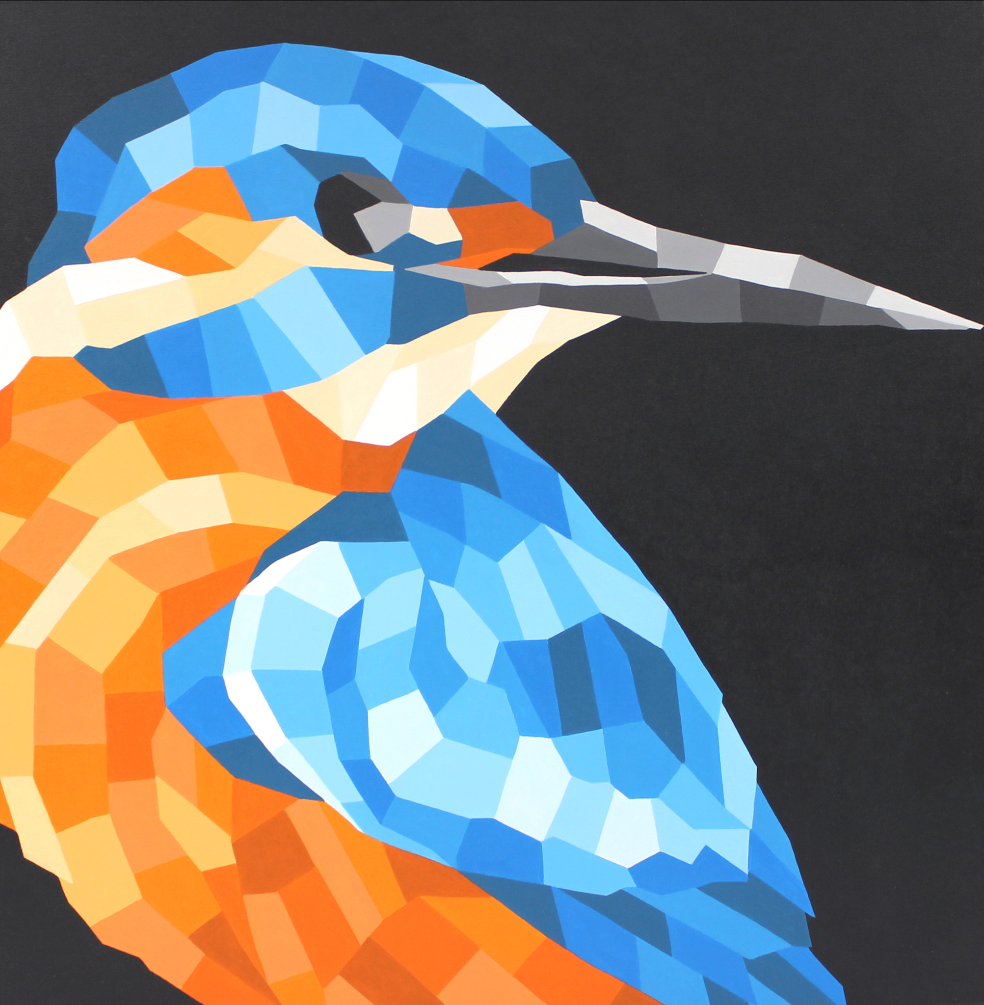 Oranje Blauw Vogel Dieren Kleurrijk Vrolijk Ijsvogel Geometrisch Kingfisher Stak