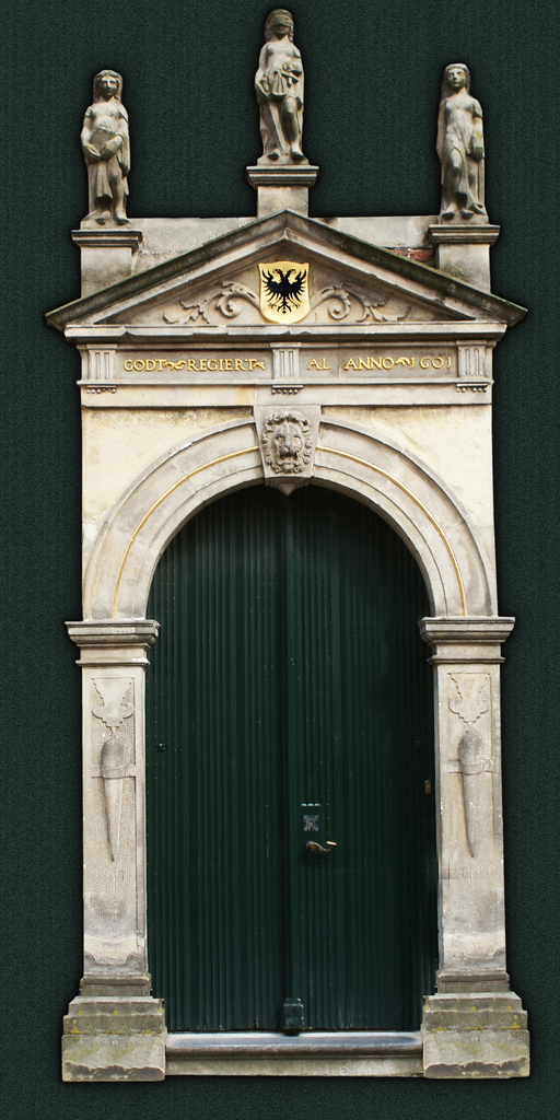 Ingang stadhuis Naarden. Godt regiert al. anno 1601