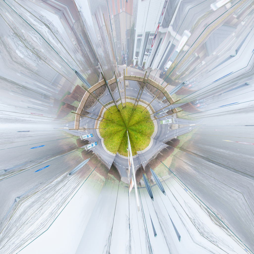 De rotonde weer rond gemaakt met behulp van 8 foto's en Photoshop. Te koop in allerlei formaten.