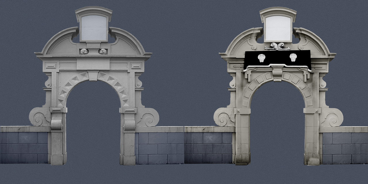 Voor en achterzijde van het poortje naar het voormalige kerkhof bij de zuiderkerk aan de jodenbreestraat
