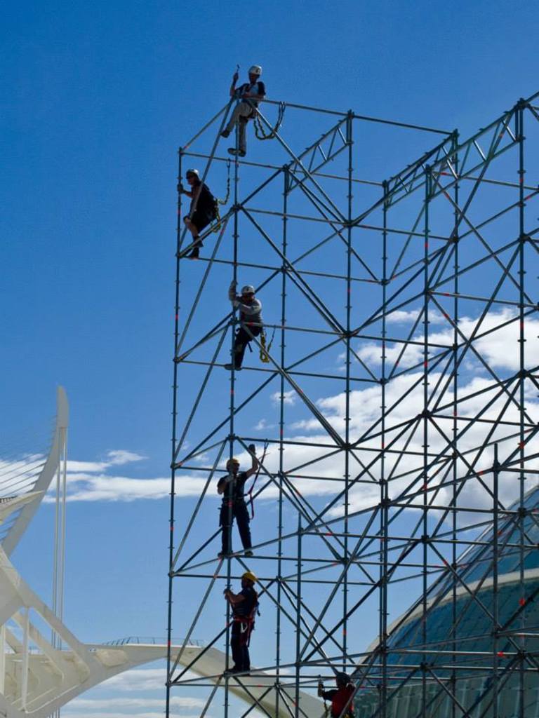 Opbouw van een stijger t.b.v. een concert in Valencia