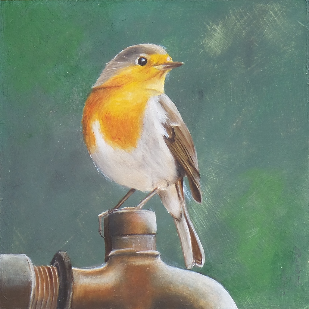 roodborstje op buitenkraan