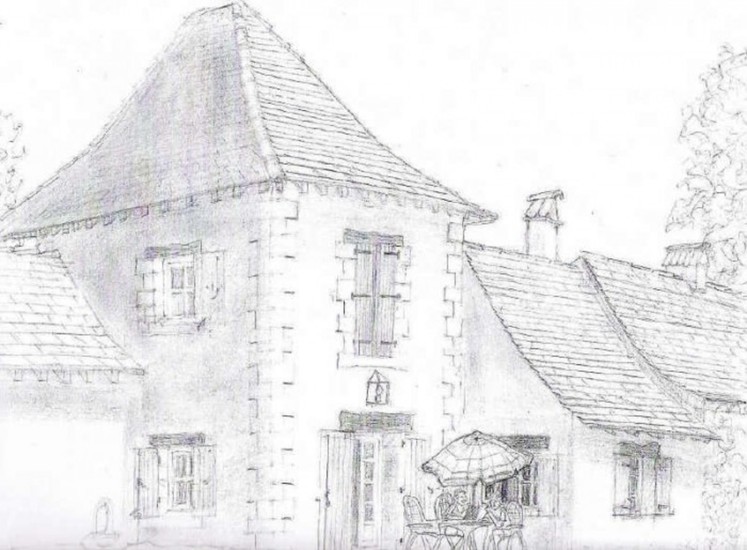 Vakantiehuis in de Dordogne. getekend "en plein air"