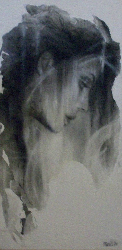 Marieke Samuels maakt schilderijen van vrouwengezichten. Het werk is kleurrijk en dynamisch en toch is er sprake van een pose en verstilling. Juist die tegenstrijdigheid maakt het werk interessant.