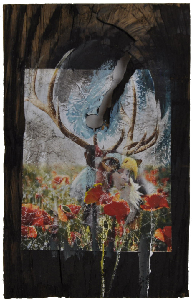 Verkocht Mixed media op doorleefd hout. geïnspireerd door Jeroen Bosch