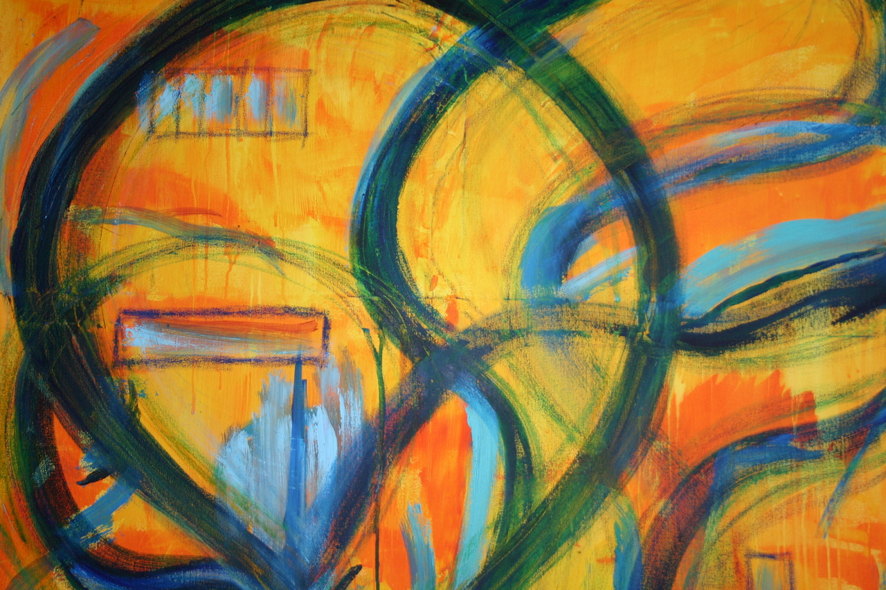 acryl en pastelkrijt op doek
