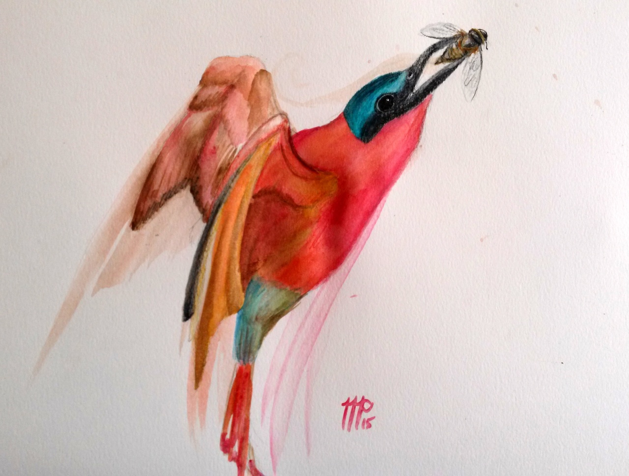 Tropische Vogel Tropisch Vlieg Wesp Bij Aquarel