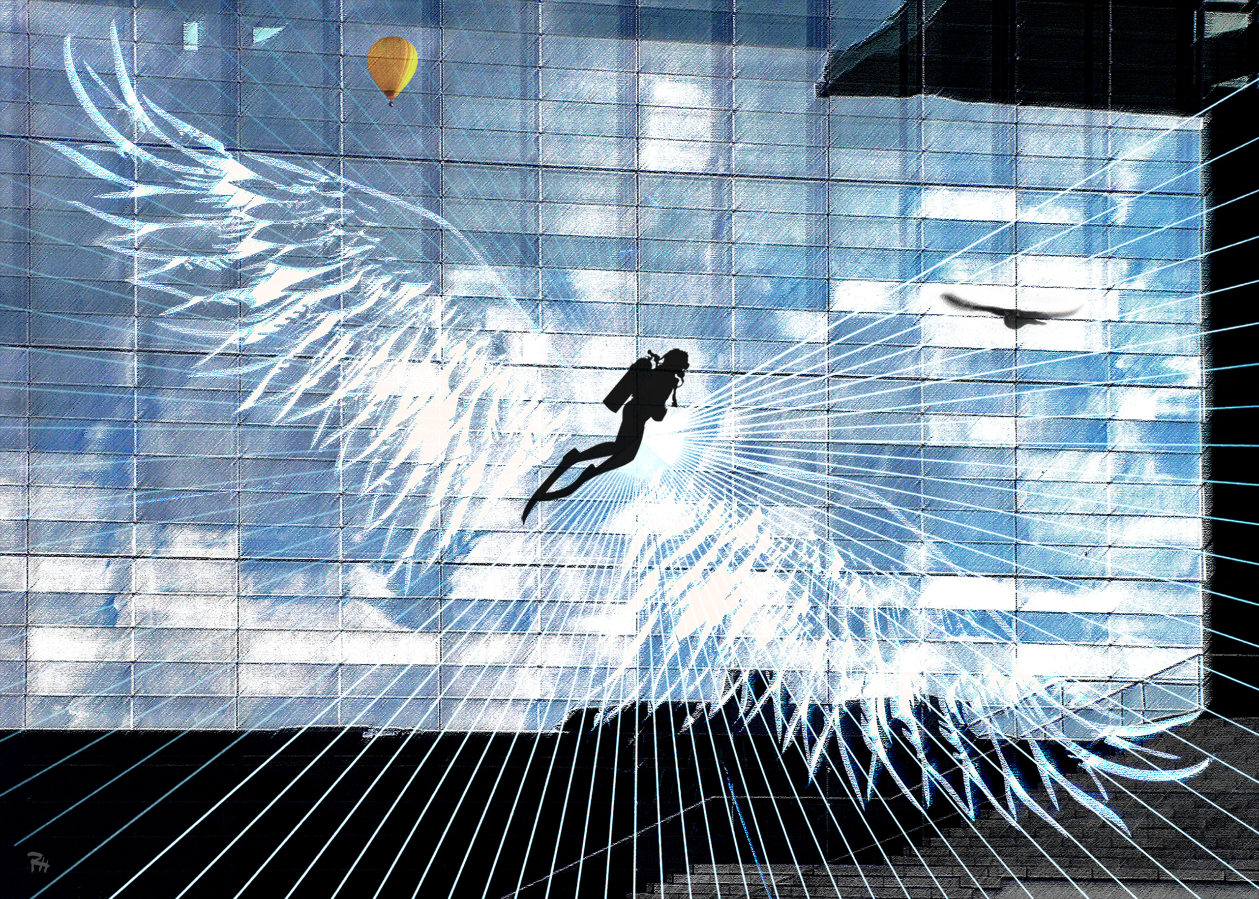 Duister is oorsprong en bestemming, licht een intermezzo. (Ingmar Bergman) Hintjens creëert digitale composities die verhalend, surreëel zijn.