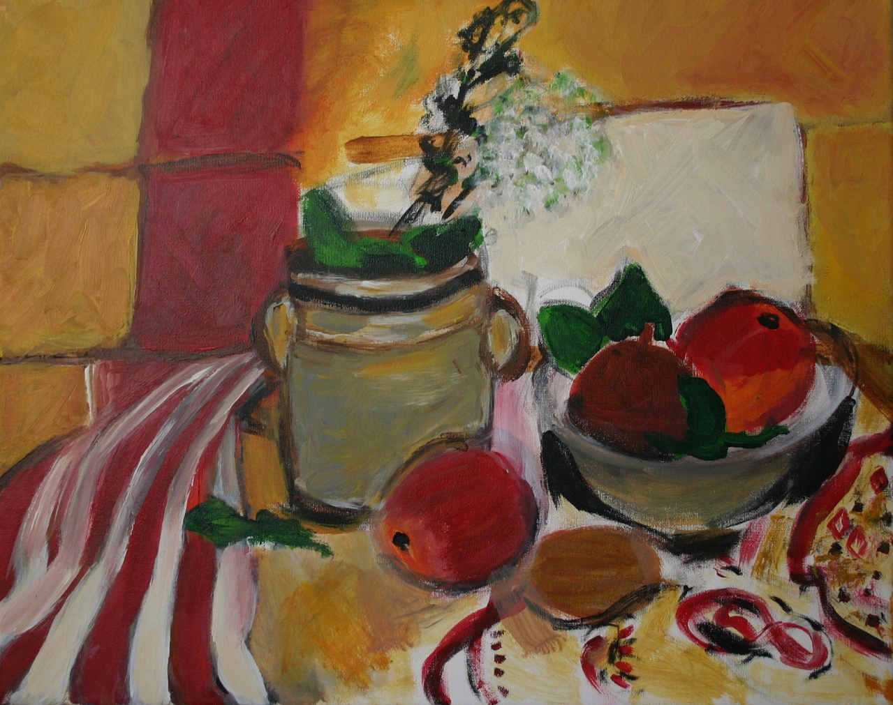 40 x 50 cm stilleven met bloem geschilderd in Academie