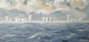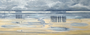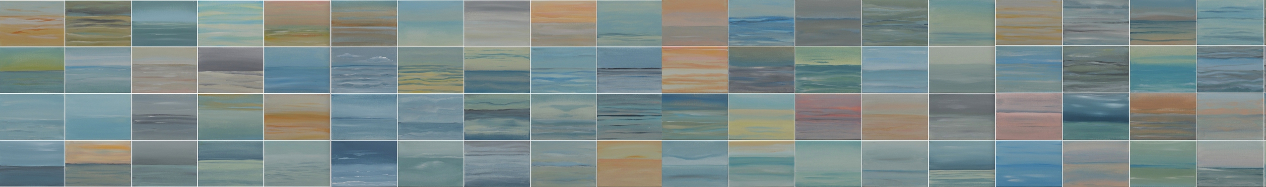Een samenstelling van 76 kleine doekjes met de zee als thema. De Doekjes zijn op 4 houten panelen gemonteerd (met ophang systeem) en onderling verwisselbaar. De panelen kunnen naast of onder elkaar gehangen worden of twee aan twee. De voorkeur van de kunstenaar gaat uit naar vier platen naast elkaar, zoals op de foto. Een meerluik is, in opdracht, zelf samen te stellen en ook een leuk idee als kado. Per persoon geef je een doekje...je kunt met een kleine of grote groep op die manier een meerluik samenstellen! Dit kunnen zoveel of weinig doekjes zijn als u zelf wilt.