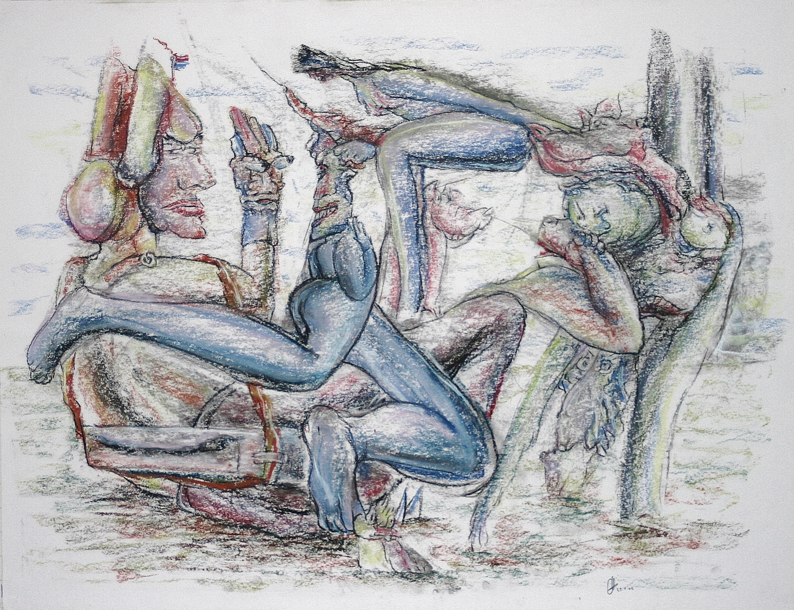 .. ' Ligging en Beweging ' hier in opvoering zouden zich door elkaar gepasseerd kunnen voelen, maar ten hoogste zullen ze dan als.' Blabberliefhebbende Varkentjes ' met modder gooien toch?; ' De Filosofisch Bezwaarde ' die bijna op scherp (liggend) zijn ' Groteske Drama ' wil ontmoeten dat haast voor zijn voeten zou willen liggen lijkt het wel, en de ' Blauw(tje) Aangelopen Expressie ' die er te veel naar lijkt uit te kijken om naar zichzelf om te kijken .. met als hoogtepunt tot gevolg dat ze zich zelf in Apotheose tegen kan komen .. (212)