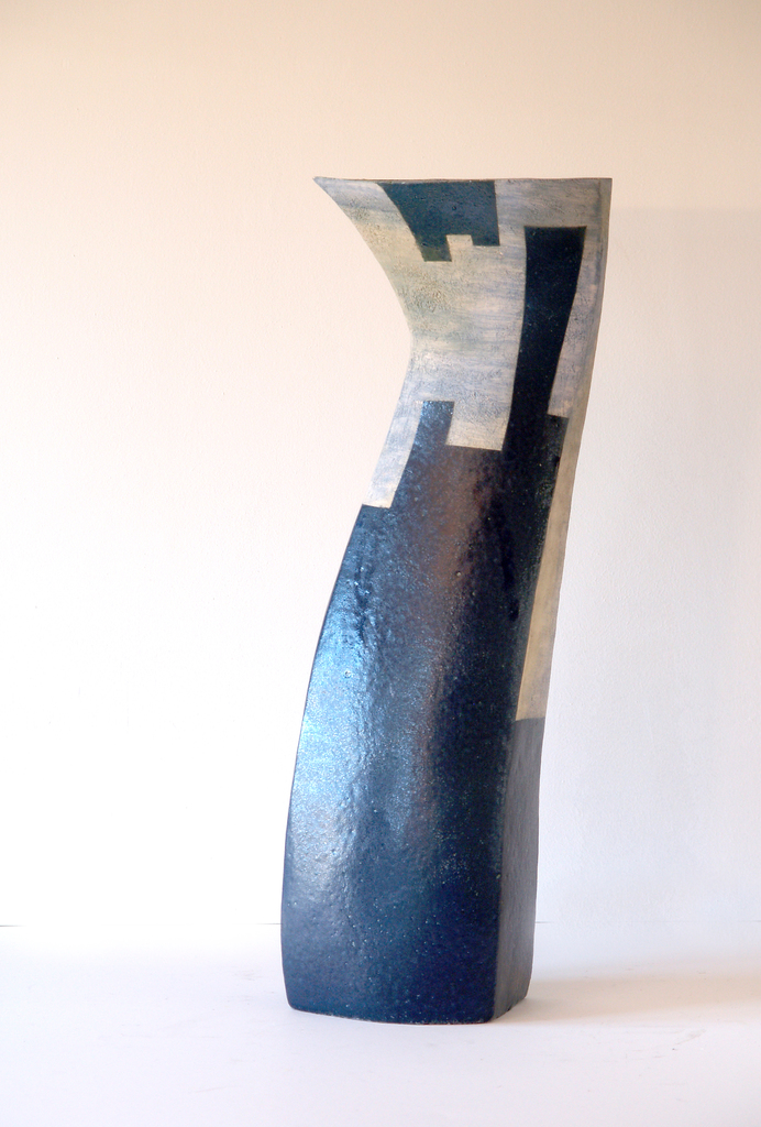 Handgevormde keramische vaas, glazuur diverse technieken.