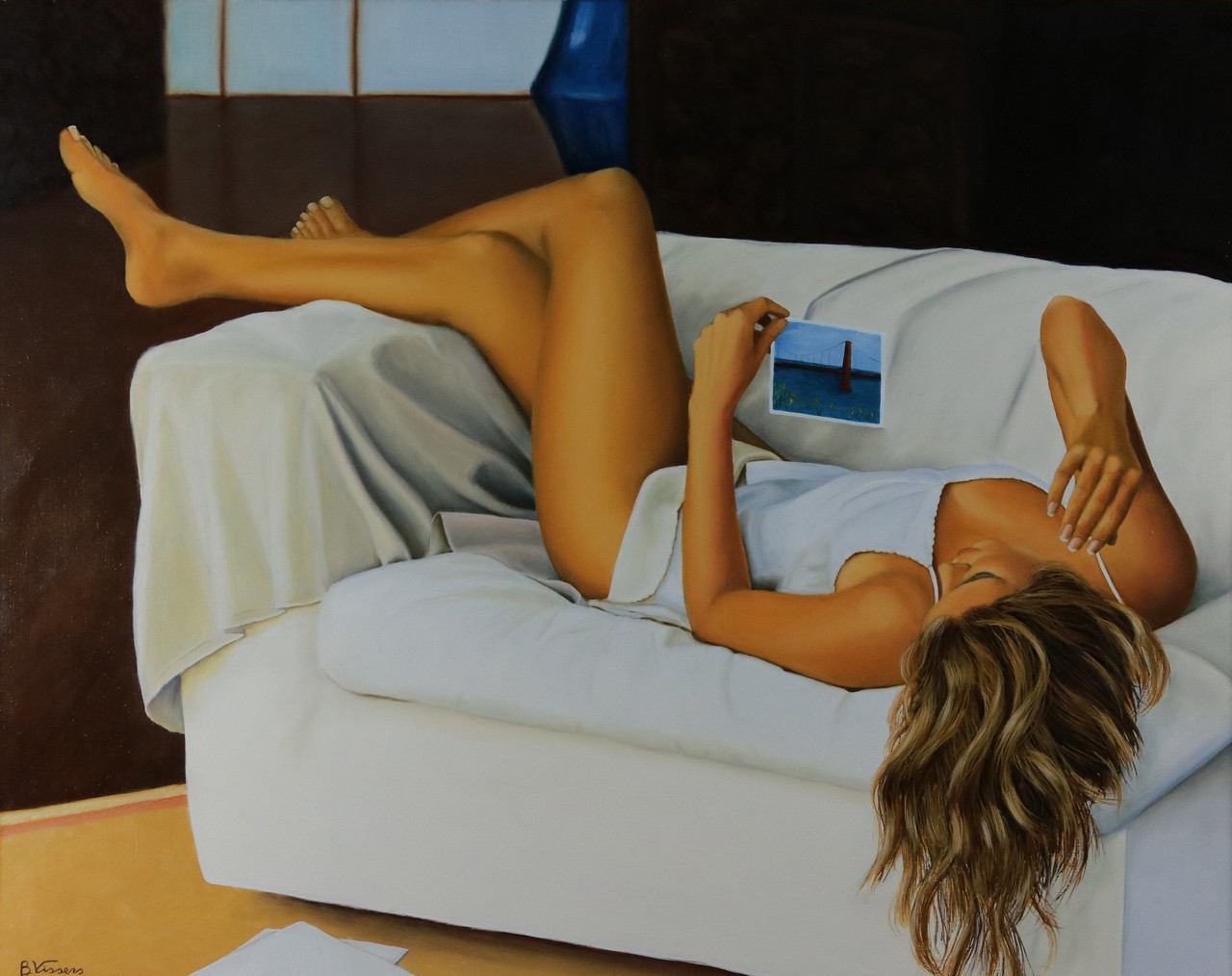 Schilderij Vrouw Woman Realistisch Kunst Painting Gekleed Bank Verlangen Vissers Realistic Kunstschilder Bert Bertvissers