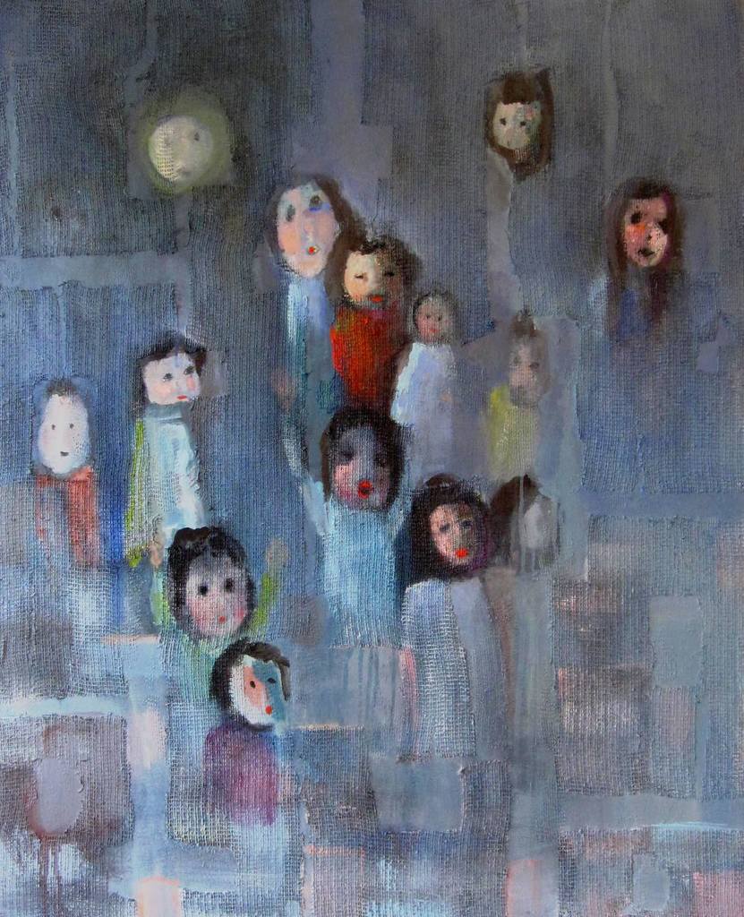 Groep Blauw Kind Familie Sprookje Child Droom Kinderen Maatschappij School Children Kerst Droombeeld Schoolplein Group Kindjes Verschillen Kunstkaart Schoolklas