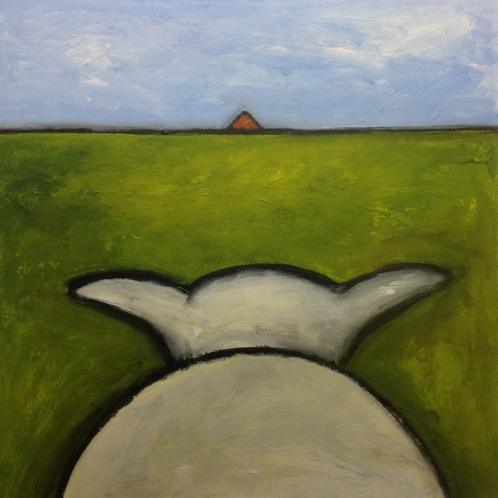 Het schaap en de schapenboet. Twee - als het ware - pictogrammen die Texel laten stralen. 82 x 82 cm.VERKOCHT.